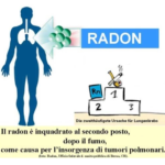 Il Radon è un gas nobile naturale che si origina dalla catena di decadimento radioattivo naturale dell’Uranio (U-238) ed è molto diffuso nella crosta terrestre. Esso è un elemento radioattivo che decade con emissione di particelle α. Gli effetti dannosi del Radon sono prodotti dai suoi discendenti radioattivi come il  Po-218 e il Po-214, i quali, essendo presenti in aria, si legano al pulviscolo atmosferico che, se inalato, si deposita nei bronchi rilasciando dosi significative che possono produrre tumori polmonari (il Radon è inquadrato al secondo posto, dopo il fumo, come causa per l’insorgenza di tali neoplasie). Il Radon emergente dal suolo è diffuso in ambiente o in aria o attraverso le acque. Le situazioni più pericolose si hanno all’interno di luoghi chiusi come locali sotterranei o interrati e seminterrati (tunnel, sottovie, catacombe, metropolitane, stabilimenti termali, bunker e caveau delle banche, cantine e garage) in cui possono venire a formarsi concentrazioni molto elevate essendo locali scarsamente areati. Il D.Lgs. 101/2020 impone il controllo ed il contenimento della concentrazione di attività del Radon nei luoghi ove si svolgono attività lavorative che possano esporre i lavoratori o le persone del pubblico a tali sorgenti. Lo stesso decreto fissa i limiti di concentrazione annui che non debbono essere superati. Questi limiti costituiscono i livelli di azione per eventuali successivi interventi e provvedimenti.